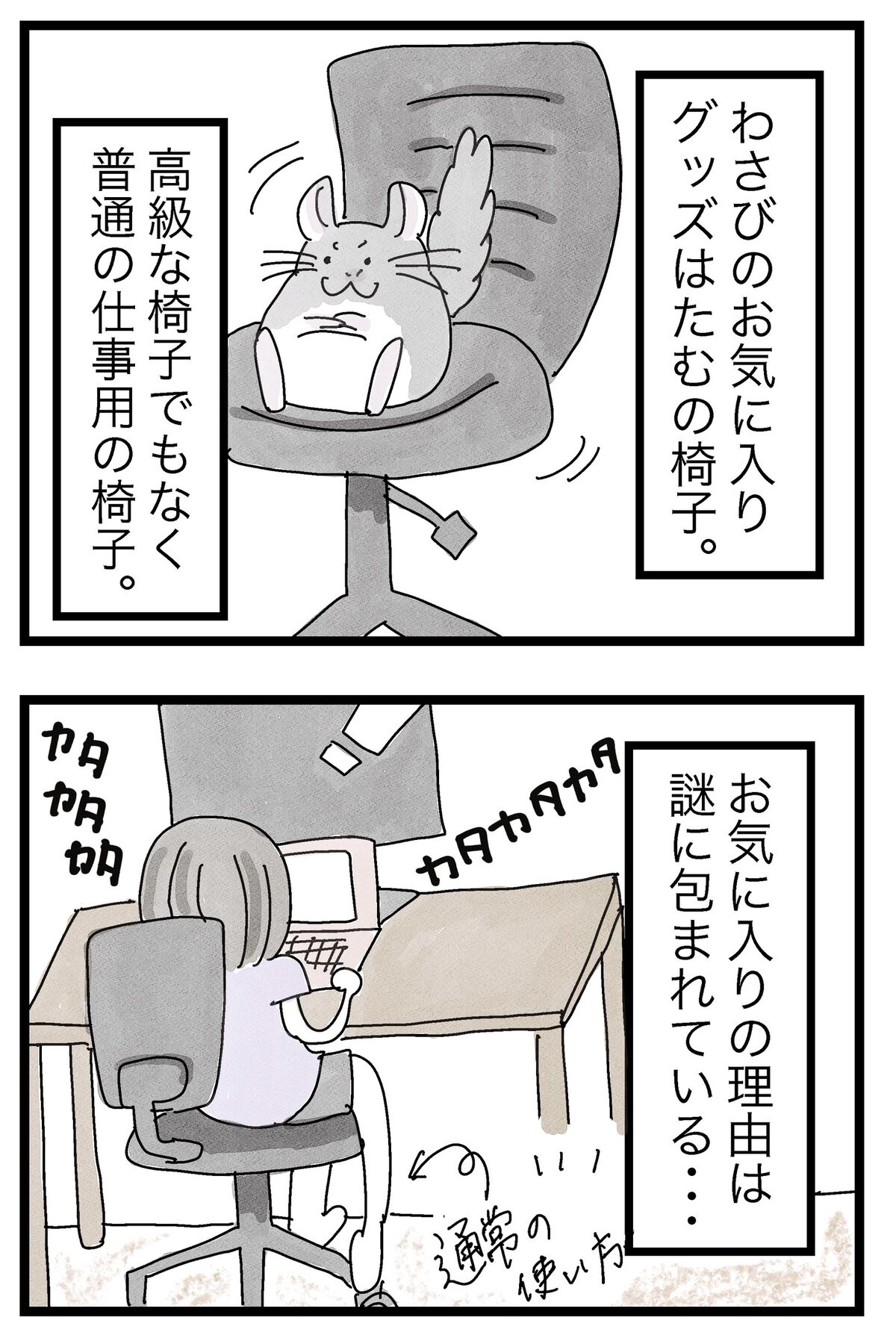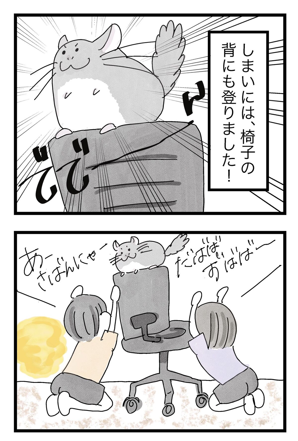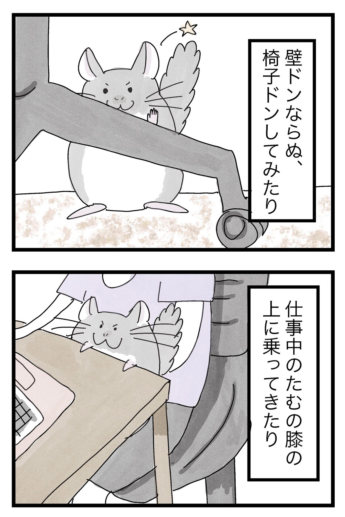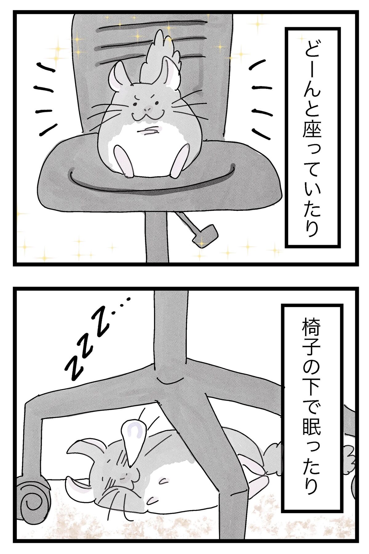 2022年08月01日 仕事用の椅子が大好きすぎるわさび ライオンキング形式で崇めてみました。↓椅子の下で寝るわさび↓お膝に座るわさび↓椅子に座るわさびすみません、今まで彩りを気にして椅子の色詐欺してました。これからは黒で塗ります、多分。↓他にはこんなのが好きです。 タグ :#チンチラ#絵日記#日常漫画#マンガ#あるある にほんブログ村 「わさび先生との日々」カテゴリの最新記事 < 前の記事次の記事 > コメント コメントフォーム 名前 コメント 記事の評価 リセット リセット 顔 星 情報を記憶 コメントを投稿する