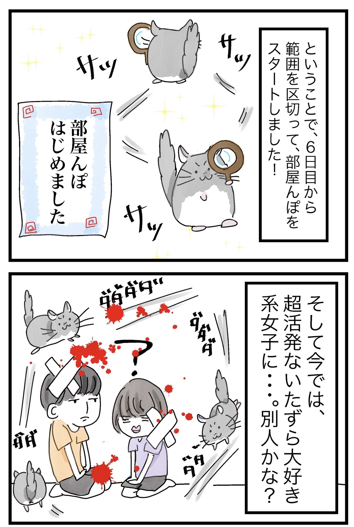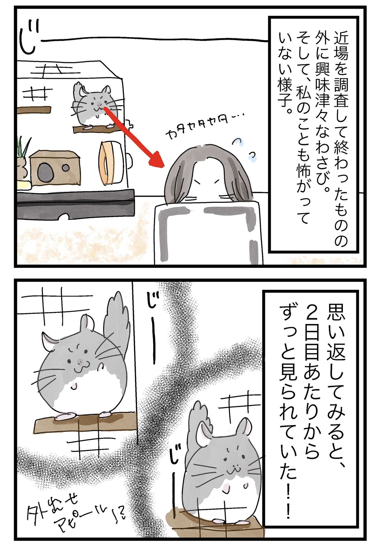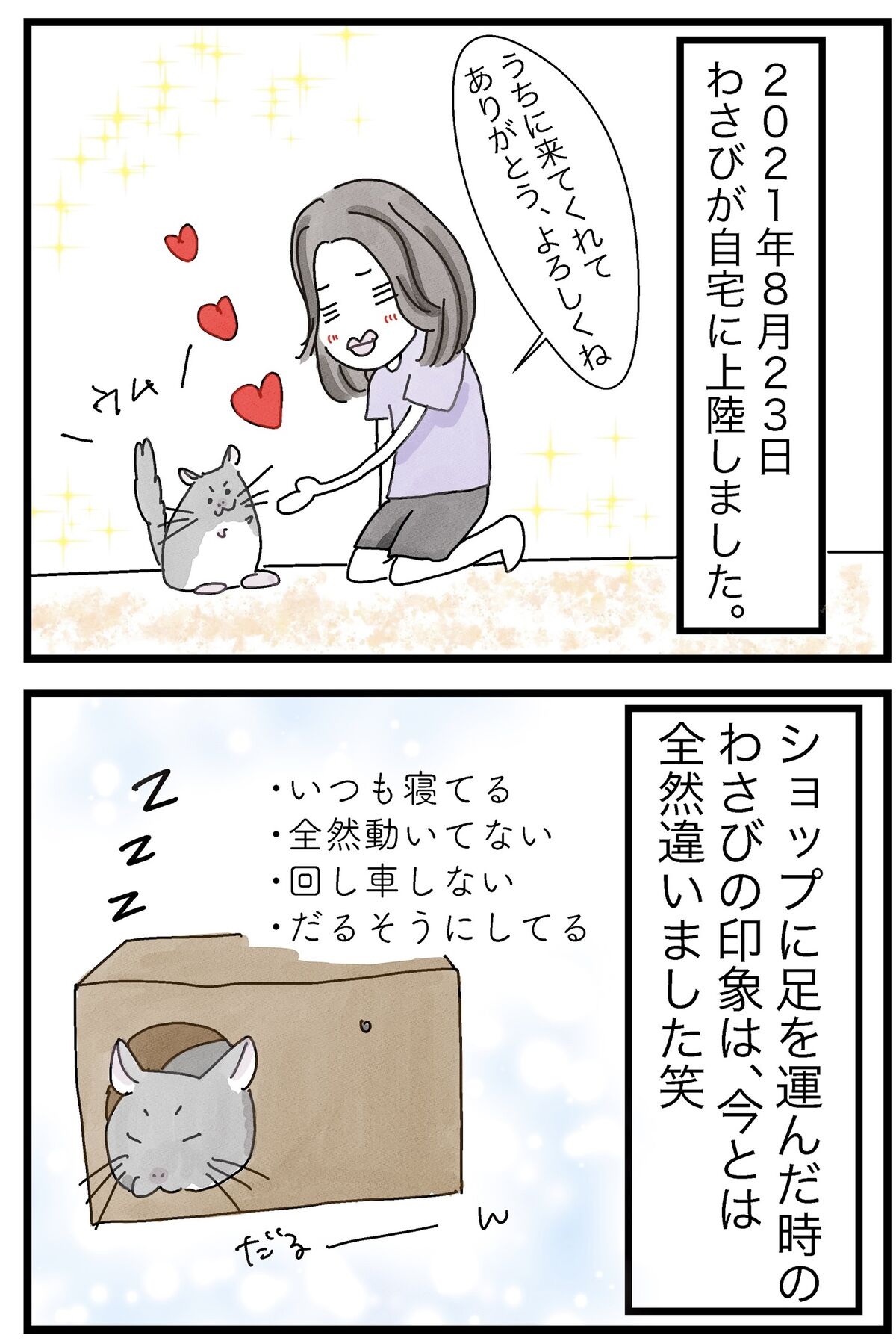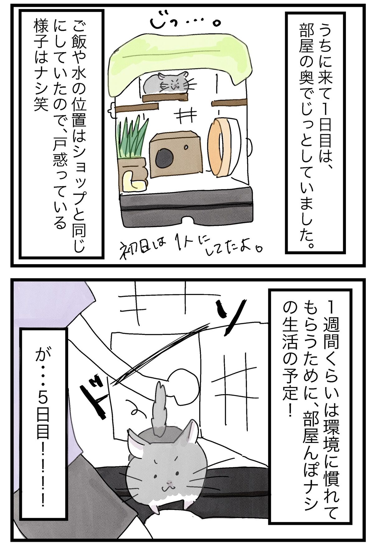 2022年08月23日 自宅にきたら別人になった(出会い編②) ショップの時はおとなしい系女子だと思ったので、わんぱく系でびっくり笑可愛いからどっちでもOK!!!!!!!!↓外に出たい圧をかけるわさび↓出会い編①はこちら↓お迎えした実家にはハムちゃんがいます タグ :#チンチラ#日常漫画#漫画#コミックエッセイ#小動物 にほんブログ村 「わさびとの出会い」カテゴリの最新記事 < 前の記事次の記事 > コメント コメント一覧 FAMILYより👶🏻👦🏻👧🏻👨🏻👩🏻👴🏻👵🏻💕 2022年08月23日 10:43 本日は、おめでとう💐 よく、来てくれました💐 わさび 2022年08月23日 16:05 >>1 ありがとうなのだ!!!! プレゼントよこせなのだ!!!! コメントフォーム 名前 コメント 記事の評価 リセット リセット 顔 星 情報を記憶 コメントを投稿する
