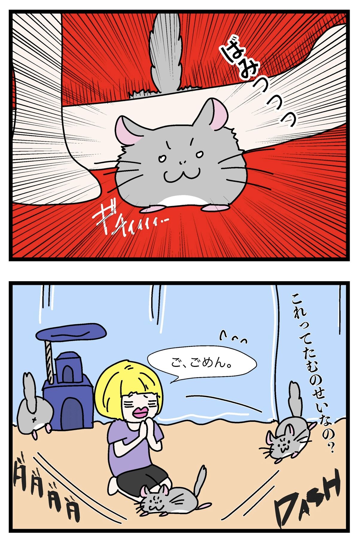 2022年10月26日 新遊び「くぐり抜け」は危険なのでやめてください 早すぎて合わせられないのよ!!!【お出かけキャリー事情】 【過去イチ焦ったこと】 タグ :#チンチラ#絵日記#漫画#漫画が読めるハッシュタグ にほんブログ村 「わさび先生との日々」カテゴリの最新記事 < 前の記事次の記事 > コメント コメントフォーム 名前 コメント 記事の評価 リセット リセット 顔 星 情報を記憶 コメントを投稿する