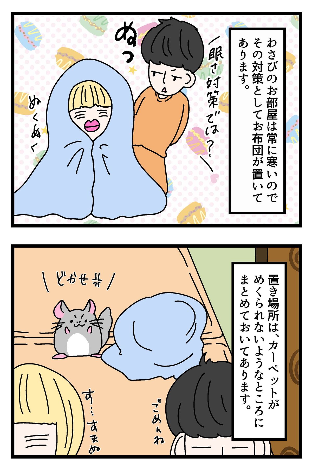 2023年03月22日 わさびvsお布団! 流石に布団はデカすぎて移動できなかったみたいです。▼実際のバトル映像はこちら!(本当はもっと長く格闘していたのですが、カメラが追いつかず一部です…) この投稿をInstagramで見る たむとわさびちゃんねる@漫画描いてます(@tamu_wasabi)がシェアした投稿 【自宅に置かれるおもちゃの末路】 【変なところで暖を取るわさびと幸せな人間ども】 タグ :#チンチラ#漫画が読めるハッシュタグ#マンガ#毎日更新 にほんブログ村 「わさび先生との日々」カテゴリの最新記事 < 前の記事次の記事 > コメント コメントフォーム 名前 コメント 記事の評価 リセット リセット 顔 星 情報を記憶 コメントを投稿する