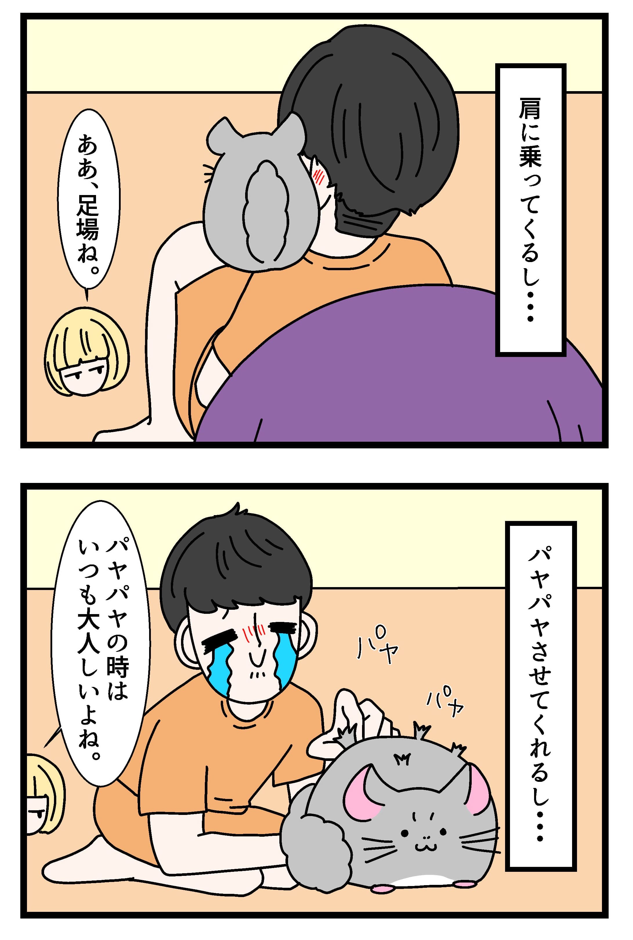 2023年07月23日 「2人きりだとわさびが甘えてくる」と言い張る相方 自分の方が仲良いと信じている人間どもなのである。。。【手伝ってくれるのは嬉しいんだけどね。】 【わさび、野生の心を取り戻す!?】 タグ :#チンチラ#漫画#絵日記#日常まんが#小動物#もふもふ#動物 にほんブログ村 「わさび先生との日々」カテゴリの最新記事 < 前の記事次の記事 > コメント コメントフォーム 名前 コメント 記事の評価 リセット リセット 顔 星 情報を記憶 コメントを投稿する