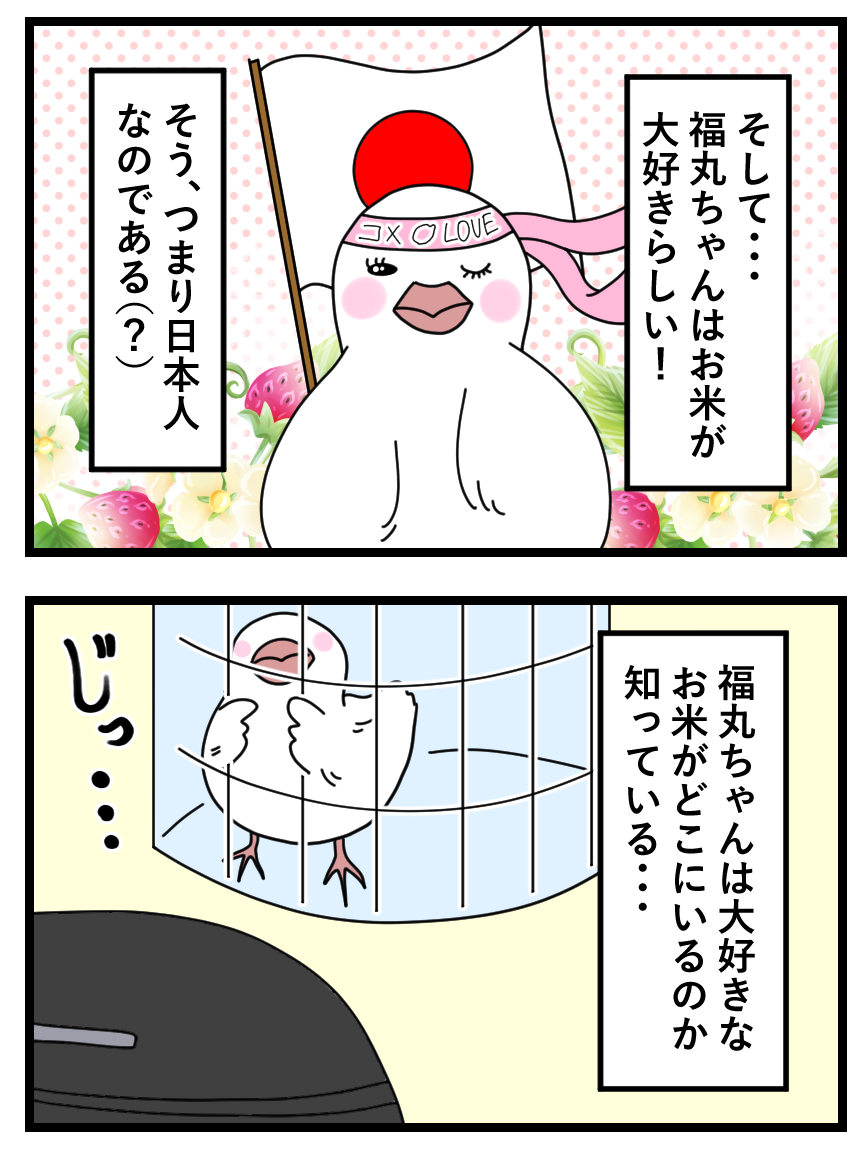 2023年10月22日 〈もふもふ話vol.7〉日本の心を忘れない文鳥ちゃん お米好きなの可愛い。。。でも、炊飯器開けた瞬間の匂いが好きなのは共感!!!!あと鳥ちゃんって描くの難しいなあと思いました笑▼実際の福丸ちゃんがこちら▼美人すぎないか!?【もふもふエピソード募集中です✨】 【我が家も抱っこ嫌いです笑】 【退去費用の話〜!】 タグ :#チンチラ#文鳥#小動物ブログ#絵日記ブログ#イラスト#動物イラスト#もふもふ#フォロワーさんの話#絵日記#漫画 にほんブログ村 「フォロワーさんのもふもふ話」カテゴリの最新記事 < 前の記事次の記事 > コメント コメント一覧 52🐳 2023年10月25日 10:31 寝る時、暗くするんだね🐦香りにも敏感とは!、、、知らない世界🐦❤ (リア友chanなのか笑) たむたむ 2023年10月25日 15:16 >>1 カバーかけるらしいよ〜!お米の炊ける匂い好きなのは共感笑 コメントフォーム 名前 コメント 記事の評価 リセット リセット 顔 星 情報を記憶 コメントを投稿する
