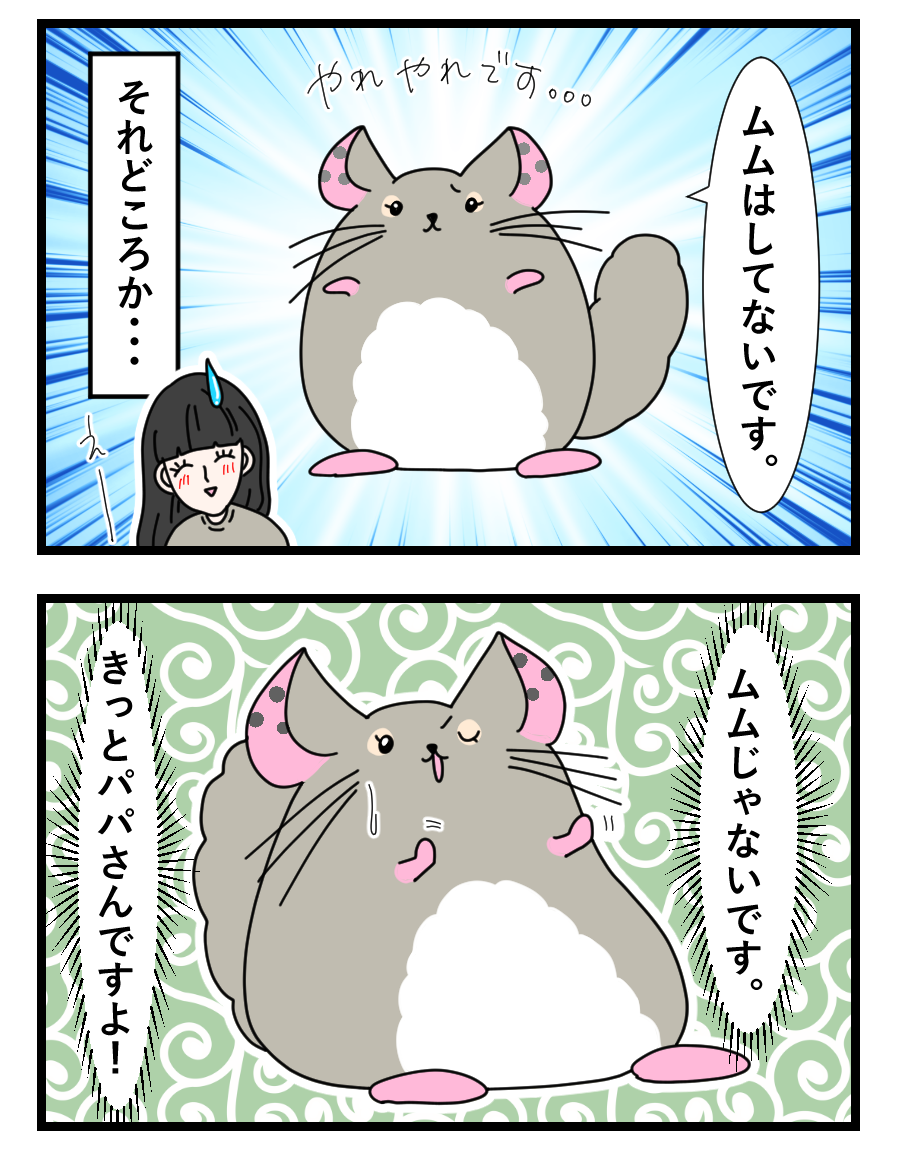 2023年10月31日 〈もふもふ話vol.12〉犯行の証拠 我が家も容疑者はいるんですけど、絶対に認めてくれないんですよね笑状況証拠めっちゃ揃ってるんですけどね…。▼犯人のムムちゃんを逮捕 笑ていうか今日ハロウィンですね!笑我が家はわさびに魔女の帽子を乗せ損ねて写真がまだありません。ショック【もふもふさんのエピソード募集しています✨】 【チンチラ界の運動音痴ちゃん発見される!?】 【毛玉さんでもそういう日あるんだな。】 タグ :#チンチラ#体験談#コミックエッセイ#小動物漫画#小動物イラスト#動物イラスト#日常漫画#8コマ#絵日記#絵日記ブログ にほんブログ村 「フォロワーさんのもふもふ話」カテゴリの最新記事 < 前の記事次の記事 > コメント コメント一覧 🐳52 2023年11月01日 00:34 だっこで逮捕🚓🚨👮何回でも逮捕したいですね💖ウラヤマシイ、、、 たむたむ 2023年11月01日 10:48 >>1 マジでそれなすぎる笑 抱っこできるの羨ましい…💓 コメントフォーム 名前 コメント 記事の評価 リセット リセット 顔 星 情報を記憶 コメントを投稿する