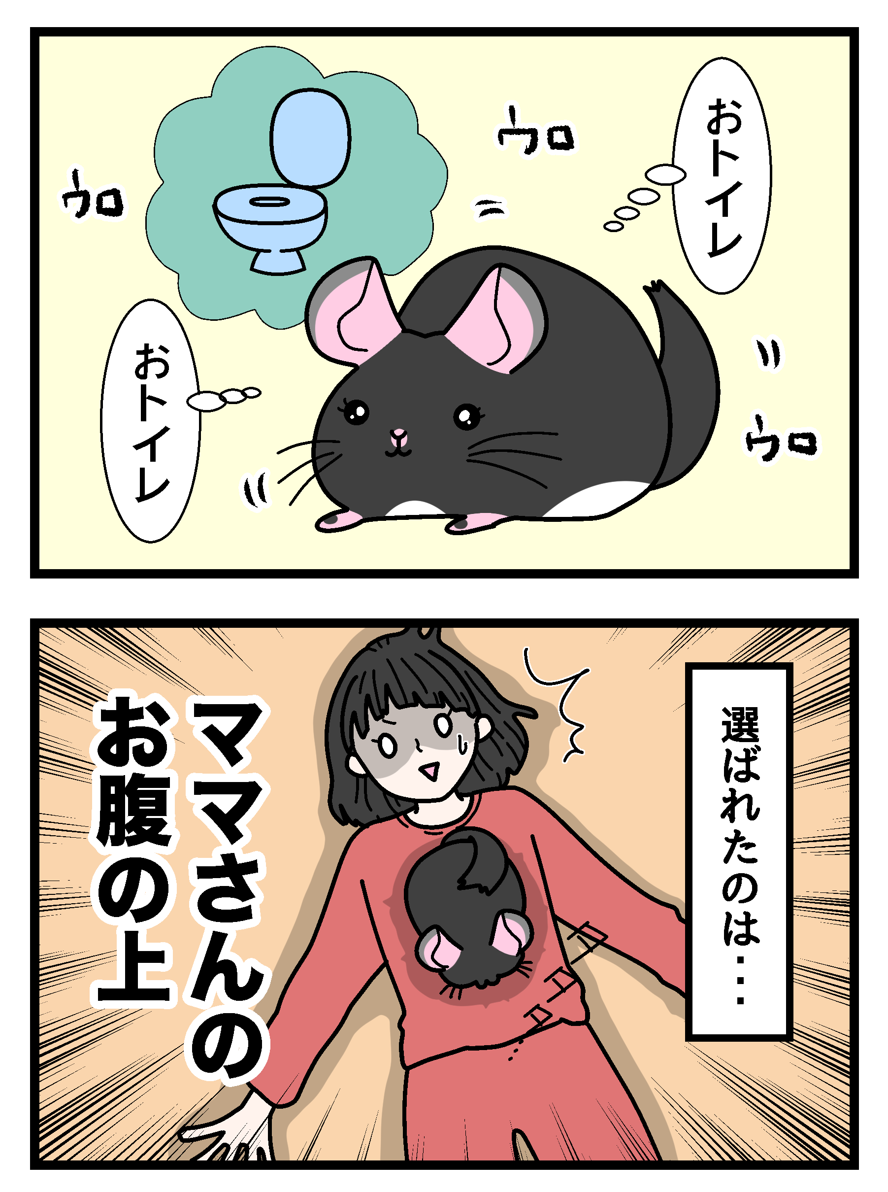 2024年02月02日 〈もふもふ話vol.51〉イケメン女子のマイブーム わさびも少し暗い部屋で部屋んぽするの好きらしいです!!にしても、お腹の上でおしっこするのはどうしてなんでしょう??平たい端っこじゃないとおしっこしないと思ってました😆▼実際のイケメン女子ひなちちゃん▼可愛い3人組!!!〜たむたむの雑談タイム〜最近気づいたことなんですが、眉毛って「ハ」の字にはできるんですが、「\/」の形にするの難しいんですよ!!相方が、イラスト版わさびの表情を真似してた時に、「\/」が全然できてなくて😆たむたむもやってみたんですが、やっぱりできない!これをみたあなたもやってみて〜〜!!!▼もふもふエピソードお待ちしてます🙇 タグ :#チンチラ#絵日記#8コマ#ペット#漫画#ペット絵日記#デグー#うさぎ にほんブログ村 「フォロワーさんのもふもふ話」カテゴリの最新記事 < 前の記事次の記事 > コメント コメント一覧 🐳52 2024年02月02日 13:47 えええええええ! ママは、お洗濯大変ですね (๑°ㅁ°๑) たむたむ 2024年02月03日 13:38 >>1 毎日洗濯だね★ コメントフォーム 名前 コメント 記事の評価 リセット リセット 顔 星 情報を記憶 コメントを投稿する